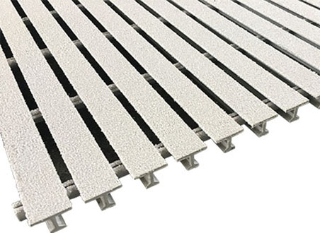 拉擠型格柵是使用I型或T型的玻璃鋼承載條穿接而成,承載條采用連續(xù)玻璃纖維通過拉擠工藝生產(chǎn),纖維含量可以達到60%以上,拼裝的格柵承載能力更強,具有尺寸及強度可設(shè)計性好等諸多優(yōu)點。